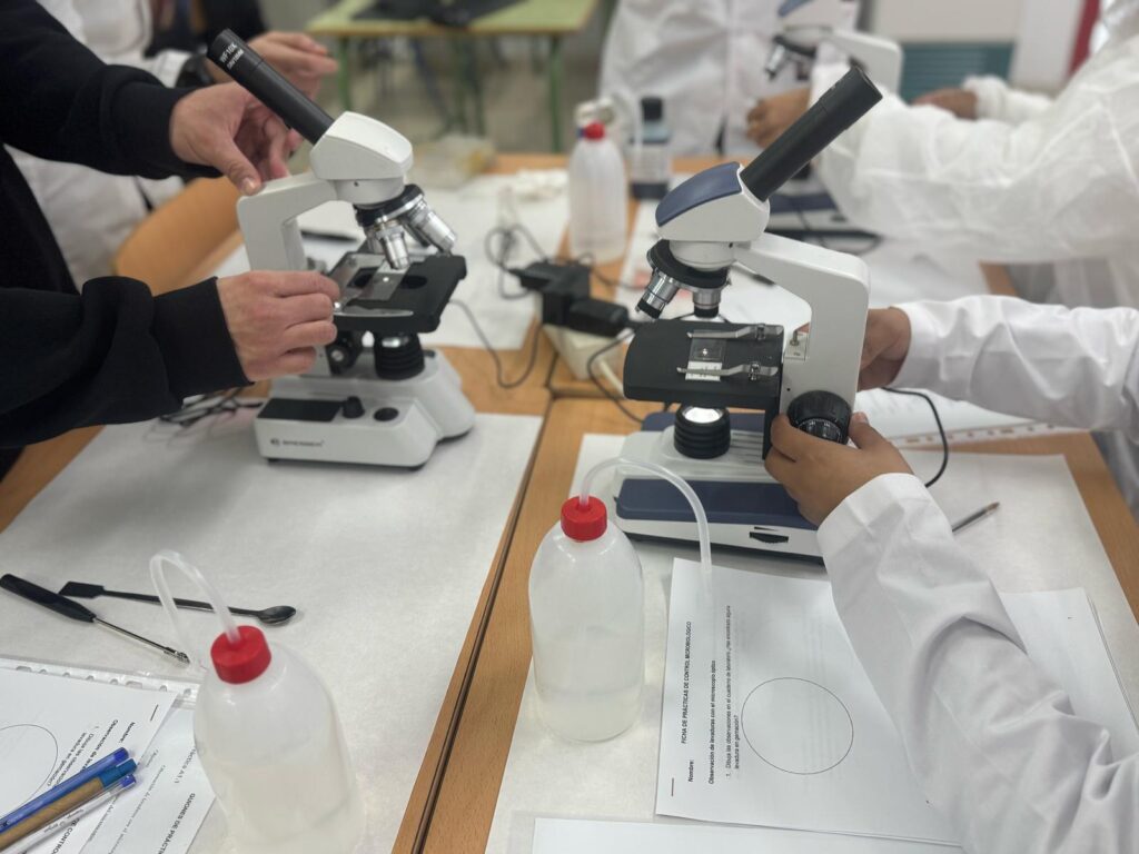 Hoy, nuestros alumnos de Procesos y Calidad en la Industria Alimentaria han comenzado sus prácticas de Control Microbiológico. Aprendieron a manejar el microscopio óptico y observaron en detalle las bacterias del yogur 🥛 y el hongo responsable del queso azul o roquefort 🧀.
