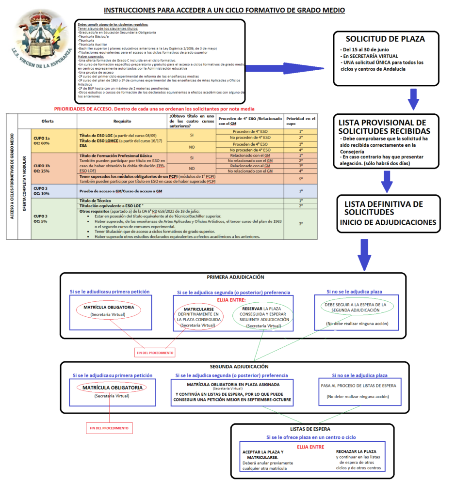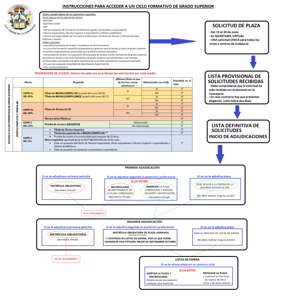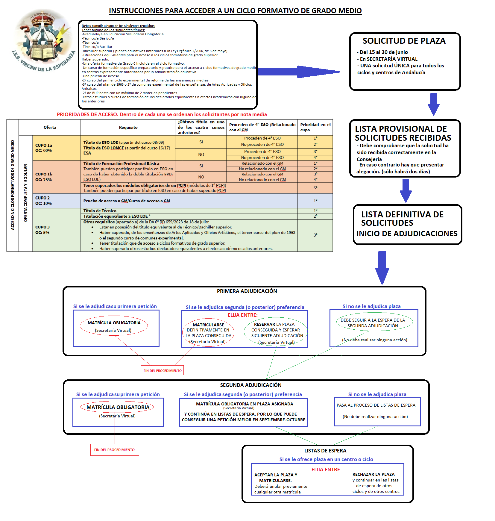 - El procedimiento de admisión a Grado Básico, Grado Medio, Grado Superior y Curso de Especialización, está centralizado para toda la comunidad autónoma.